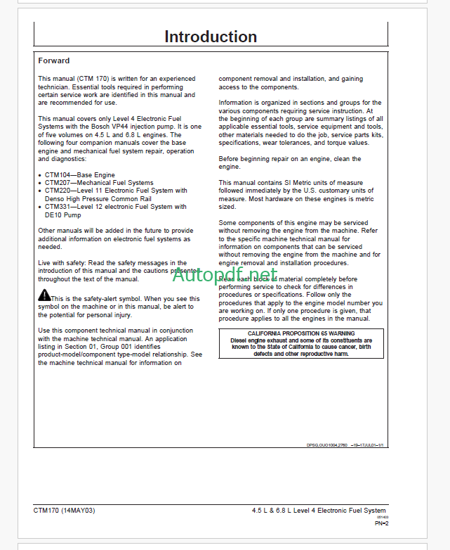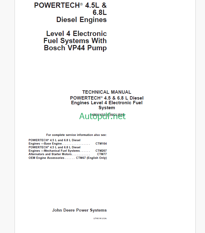 John Deere PowerTech 4.5L & 6.8L Diesel Engines Base Engine Technical Manual (CTM104)
