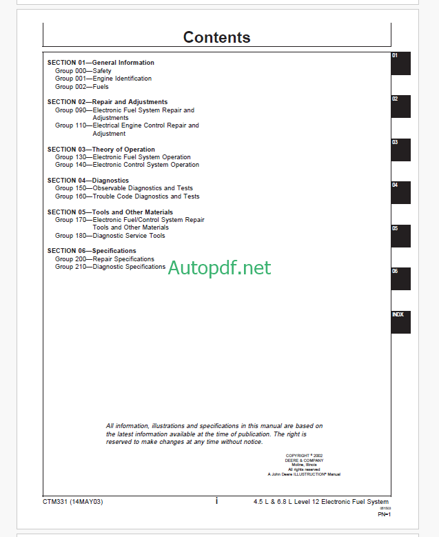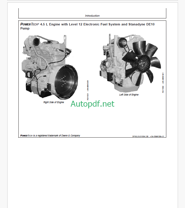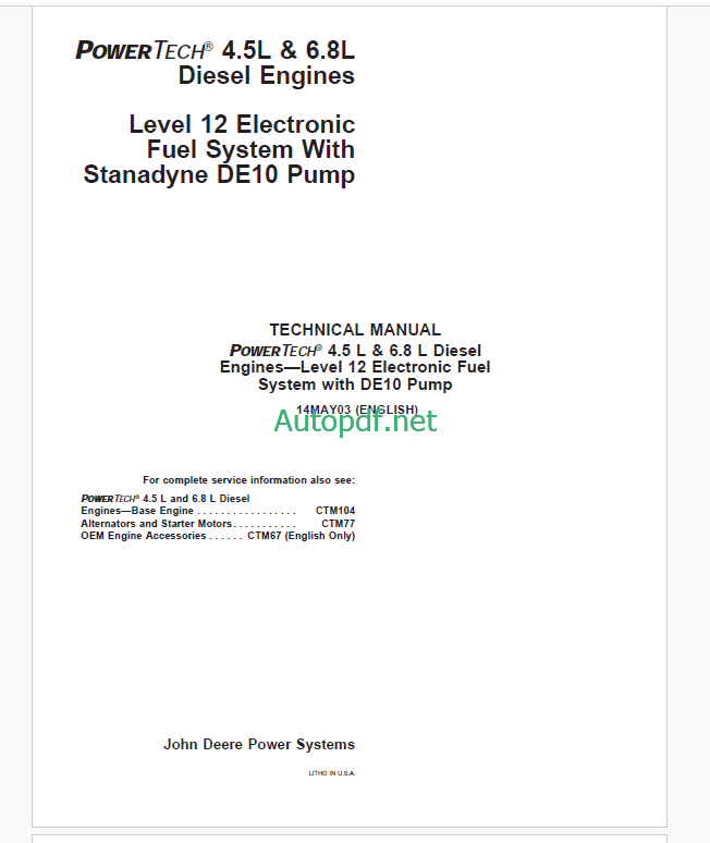 John Deere POWERTECH 4.5L & 6.8L Diesel Engines Level 12 Electronic Fuel System With Stanadyne DE10 Pump Technical Manual (CTM331)