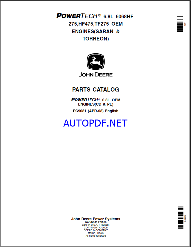 John Deere PowerTech 6.8L 6068HF 275 HF475 TF275 OEM ENGINES(SARAN & TORREON)