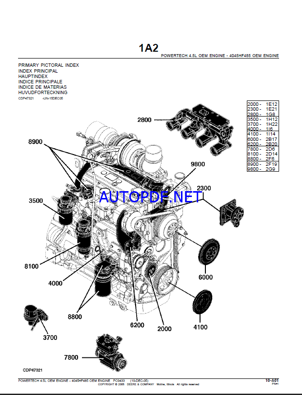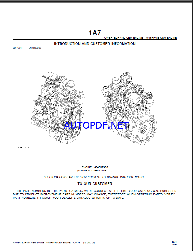 John Deere POWERTECH PLUS 4.5L OEM ENGINE (4045HF485) Parts Catalog