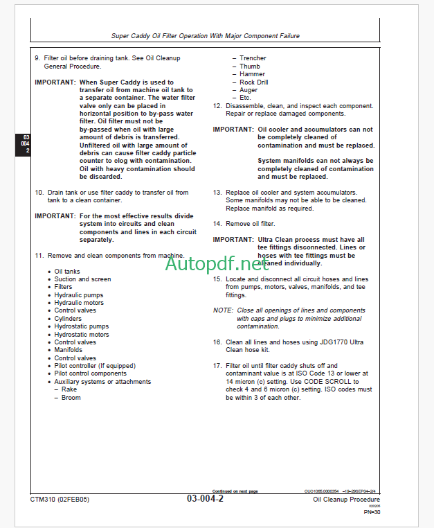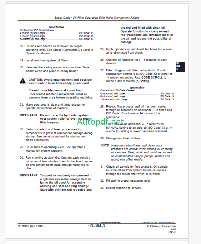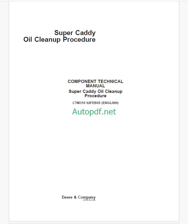 John Deere Super Caddy Oil Cleanup Procedure Component Technical Manual(CTM310)
