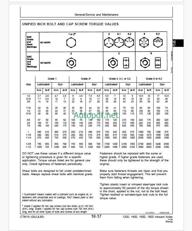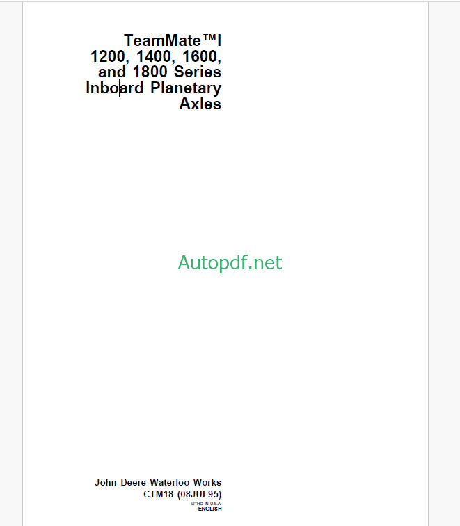 John Deere TeamMate™I 1200 1400 1600 and 1800 Series Inboard Planetary Axles Technical Manual (CTM18)