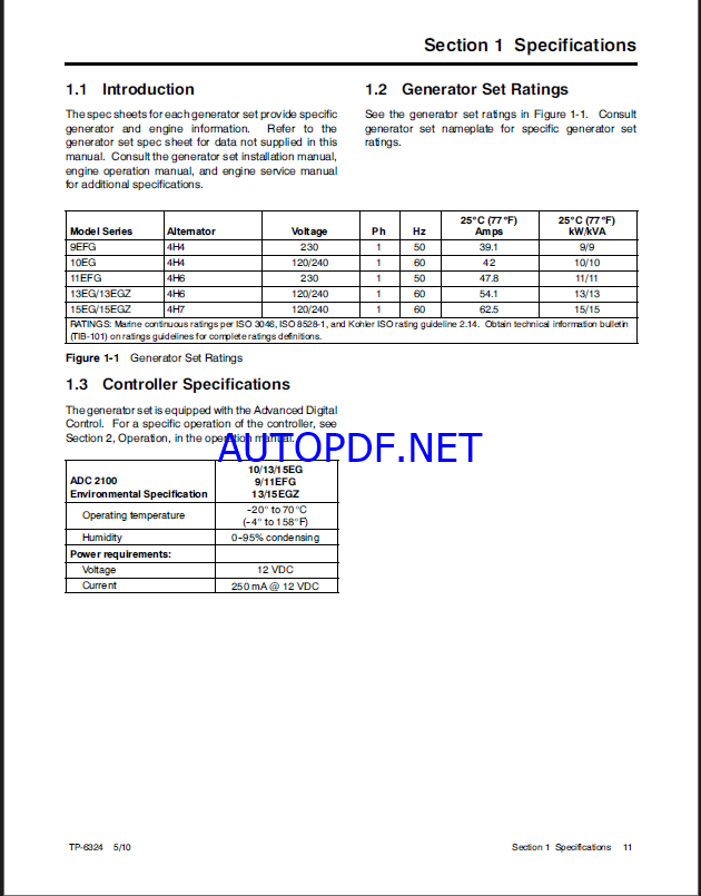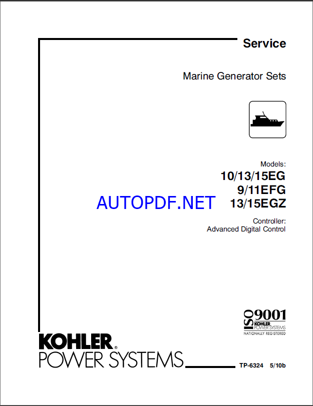 Kohler 10EG, 13EG, 15EG, 9EFG, 11EGZ, 13EGZ, 15EGZ Marine Service Manual (tp6324)