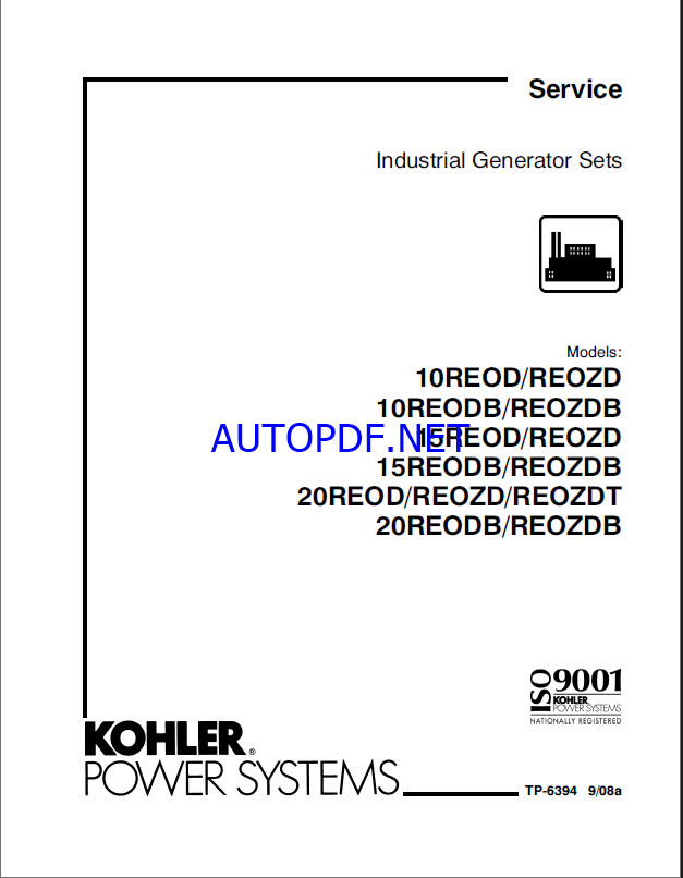 Kohler 10REOD,REOZD,10REODB,REOZDB,15REOD,REOZD,15REODB,REOZDB,20REOD,REOZD,REOZDT,20REODB,REOZDB Industrial Generator Sets Service Manual (tp6394)