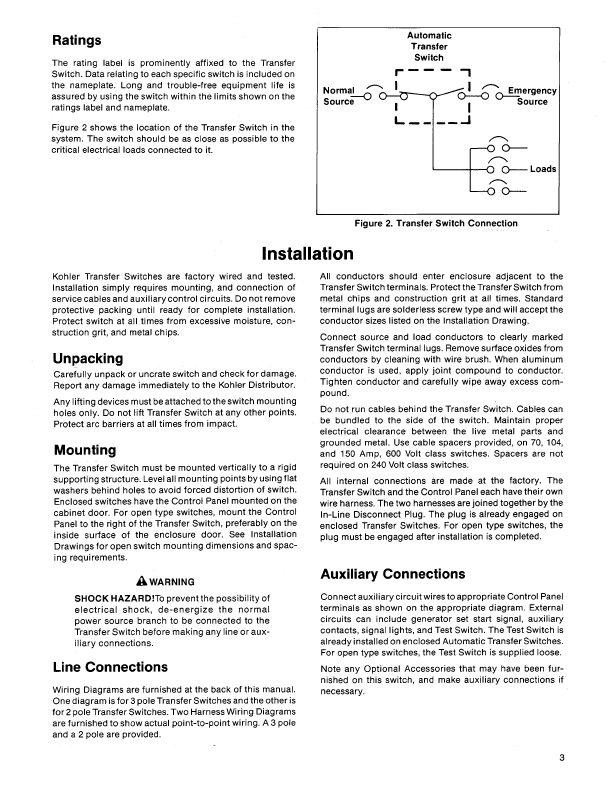 Kohler 30-400 Amp Series R340 Automatic Transfer Switch, Non Automatic Transfer Switch Operation and Installation Manual (tp5088)