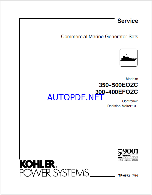 Kohler 350-500EOZC, 300-400EFOZC Commercial Marine Generator Sets Service Manual (tp6672)