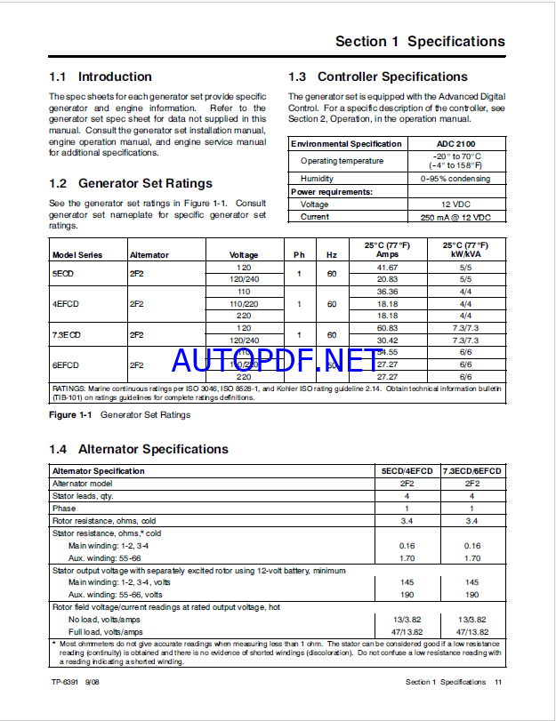 Kohler 5ECD, 4EFCD, 7.3ECD, 6EFCD, 5ECD, 4EFCD-Low CO, 7.3ECD, 6EFCD-Low CO