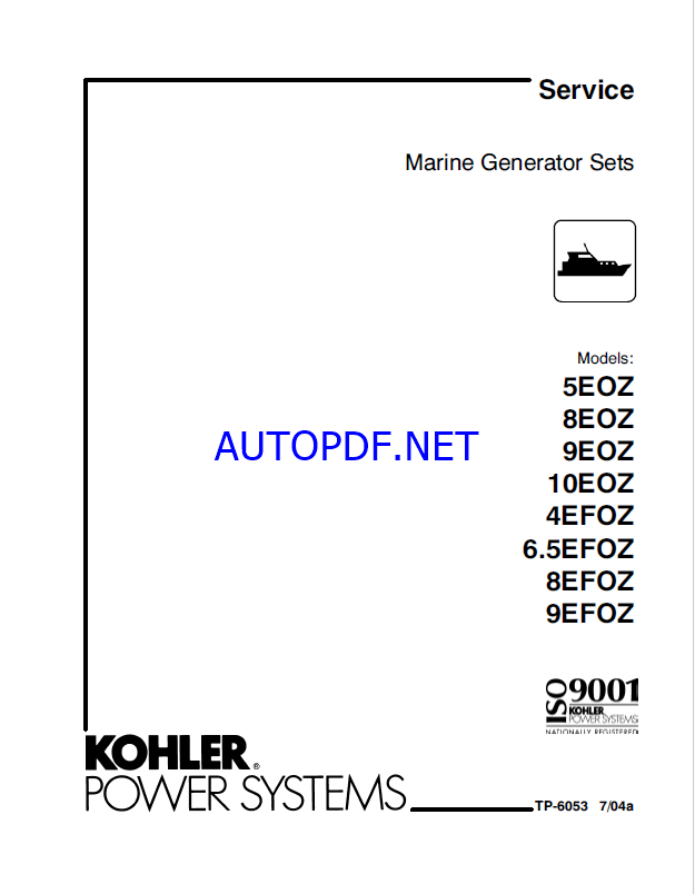 Kohler 5EOZ, 8EOZ, 9EOZ, 10EOZ, 4EFOZ, 6.5EFOZ, 8EFOZ, 9EFOZ Marine Service Manual (tp6053)