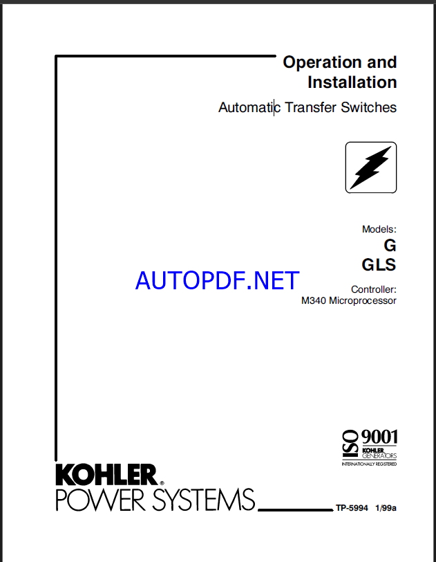Kohler G, GLS Automatic Transfer Switches Operation and Installation Manual (tp5994)