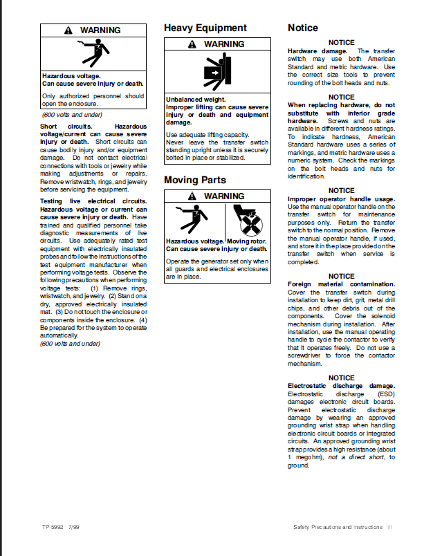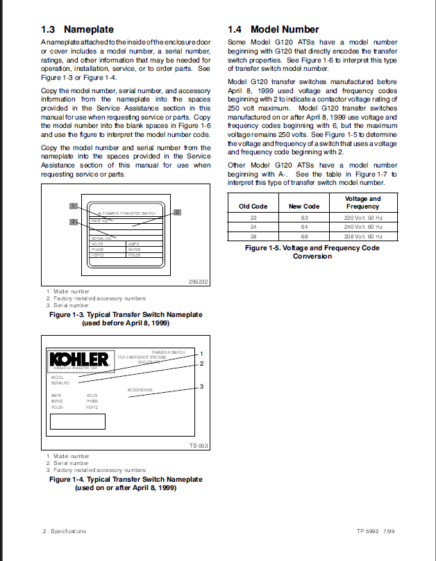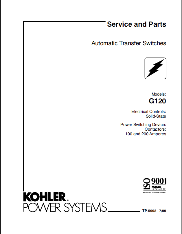 Kohler G120 Automatic Transfer Switches Service and Parts Manual (tp5992)