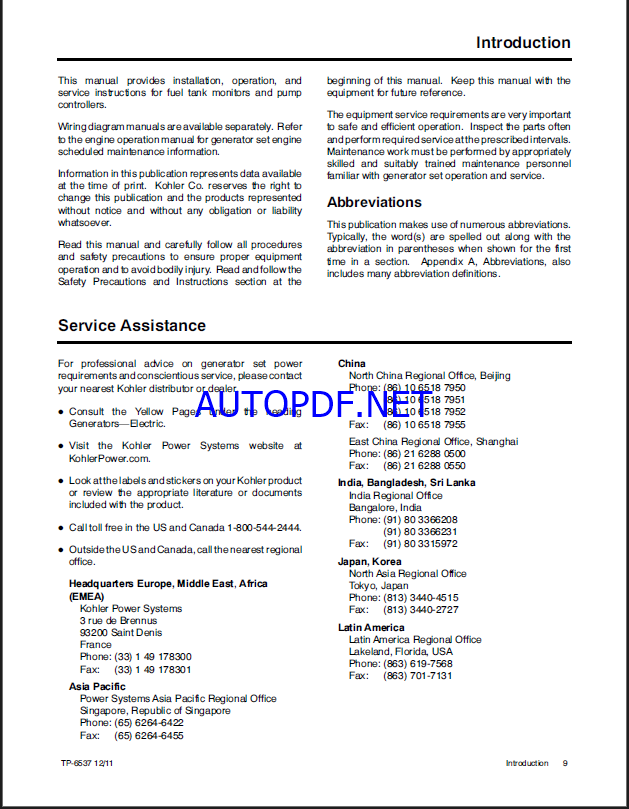 Type of Documents: Installation, Operation, Service Manual