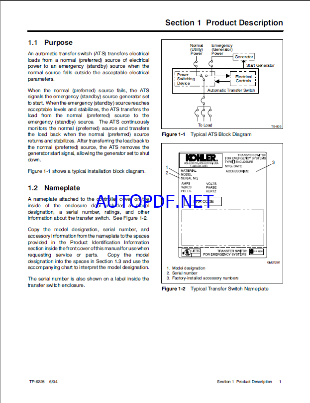 Kohler KDT, KMT, KDP, KMP Transfer Switches Operation and Installation Manual (tp6225)