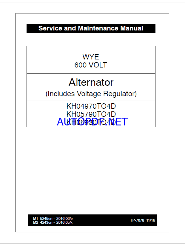 Kohler KH04970TO4D, KH05790TO4D, KH06930TO4D Service and Maintenance Manual (tp7078)