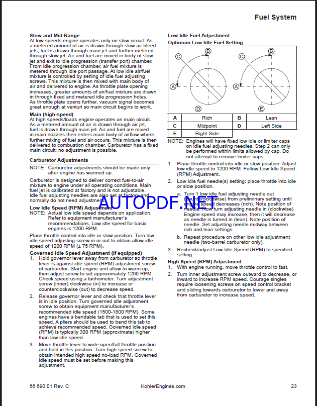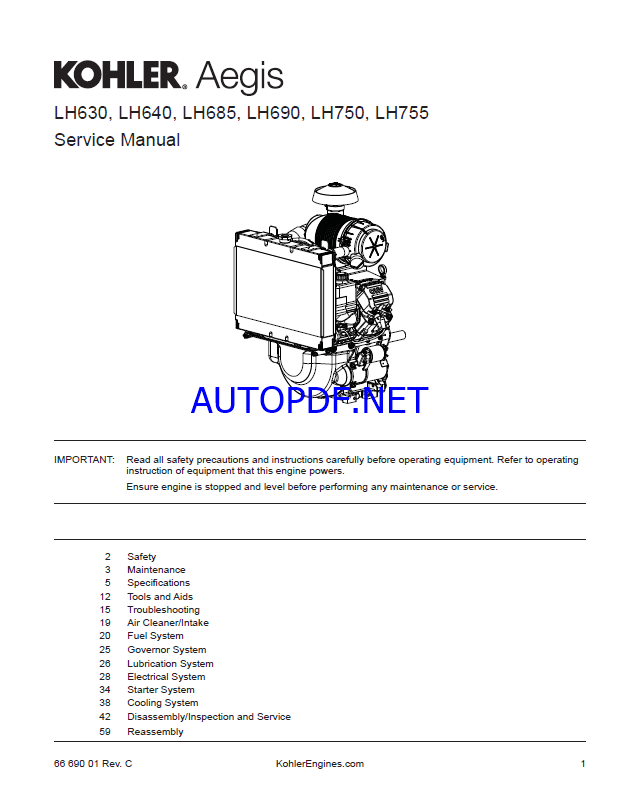 Kohler LH630, LH640, LH685, LH690, LH750, LH755