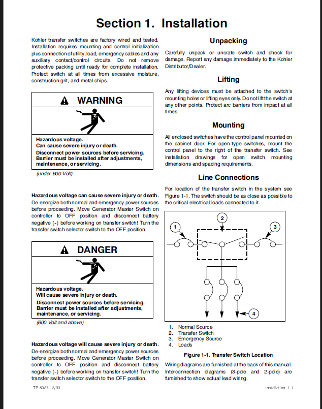 Kohler S340 Automaitic Transfer Switches Operation and Installation Manual (tp5087)