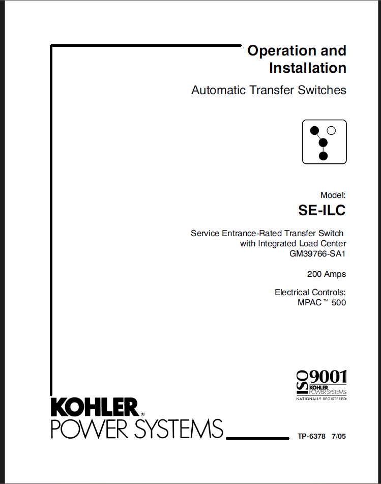 Kohler SE-ILC Automatic Transfer Switches Operation and Installation Manual (tp6378)