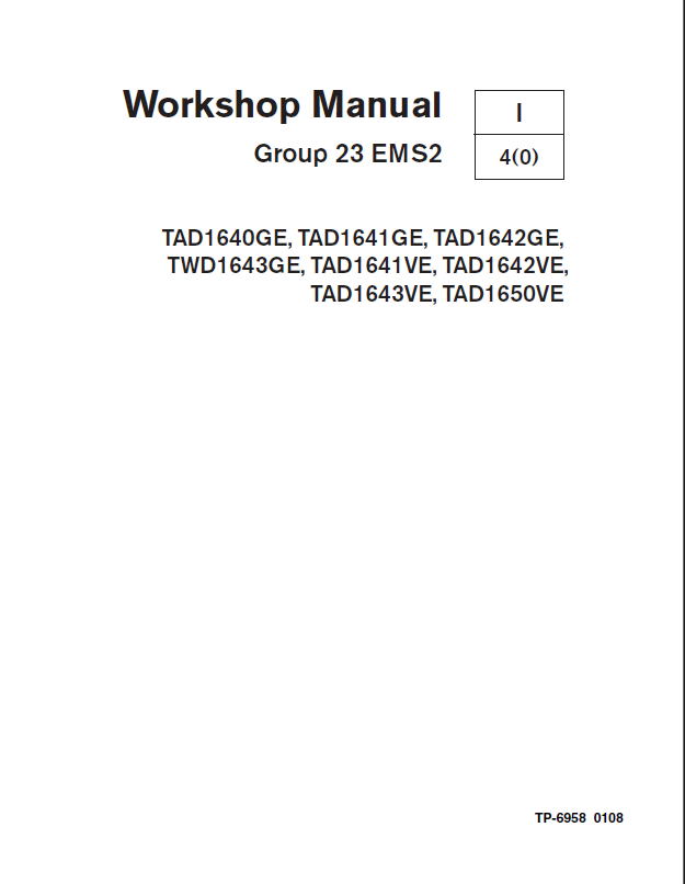 Kohler TAD1640GE, TAD1641GE, TAD1642GE, TWD1643GE, TAD1641VE, TAD1642VE, TAD1643VE, TAD1650VE Workshop Manual (tp6958)