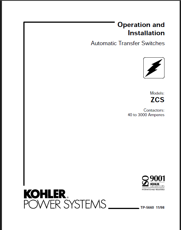 Kohler ZCS Automatic Transfer Switches Operation and Installation Manual (tp5660)