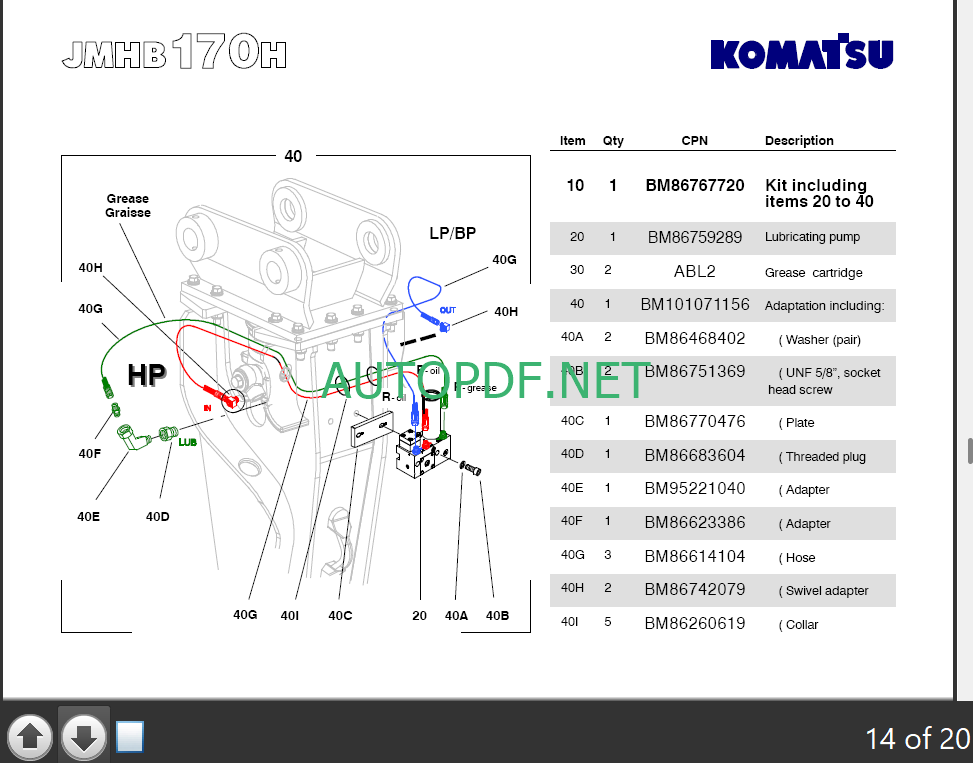 Model: Komatsu JMHB170H-1 Hydraulic Excavator Parts Book