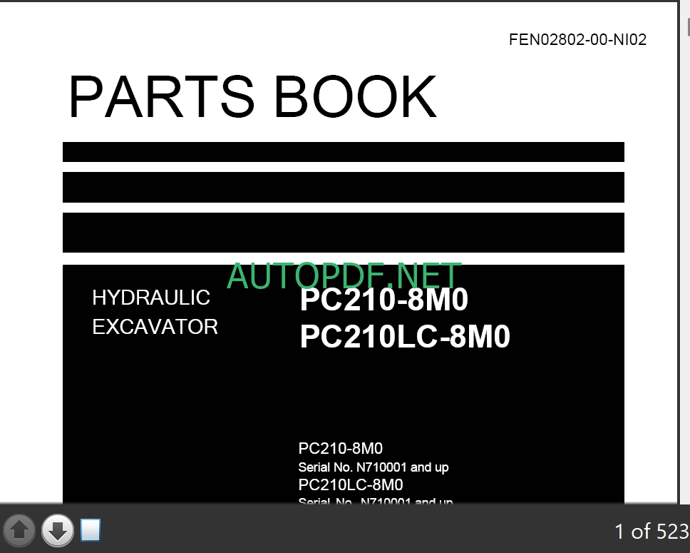 Model:Komatsu PC210-8M0, PC210LC-8M0 Hydraulic Excavator Parts Book N710001 and up