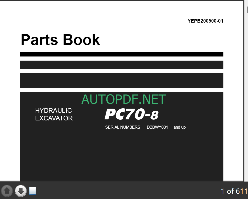 Model: Komatsu PC70-8 Hydraulic Excavator Parts Bookd Upd upp