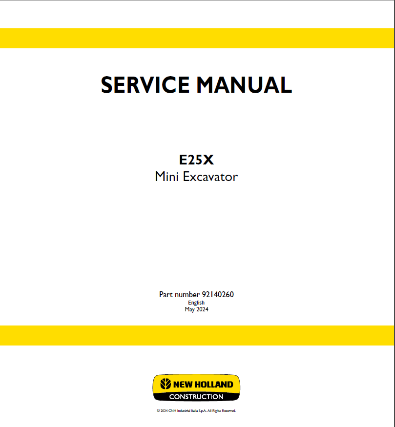 New Holland E25X Mini Excavator Service Manual (92140260) (May 2024)