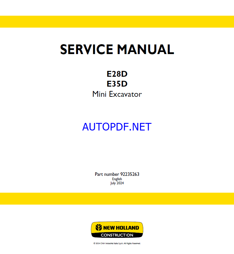 New Holland E28D, E35D Mini Excavator