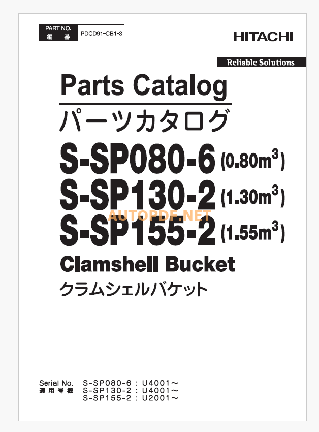 Hitachi S-SP080-6(0.80㎥), S-SP130-2(1.30㎥), S-SP155-2(1.55㎥) Parts Catalog