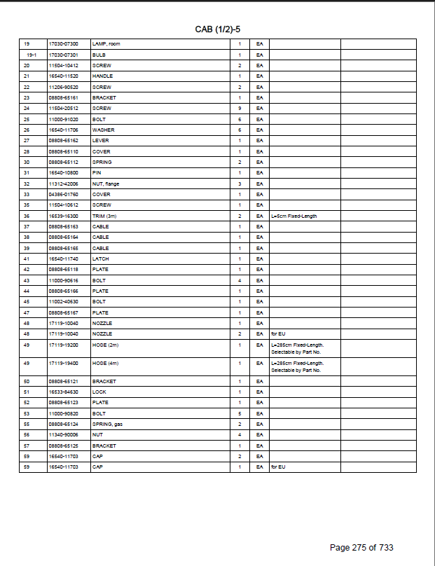 Type of Documents: Parts Manual