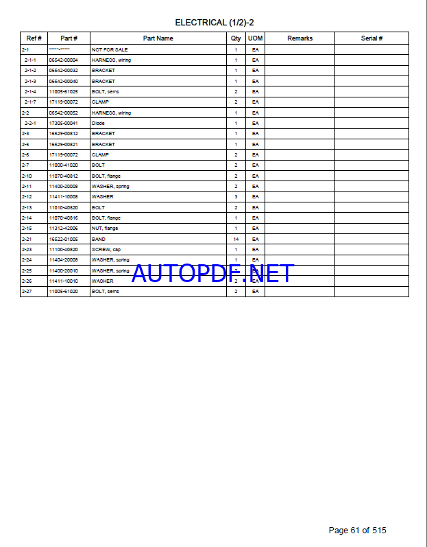 Type of Documents: Parts Manual