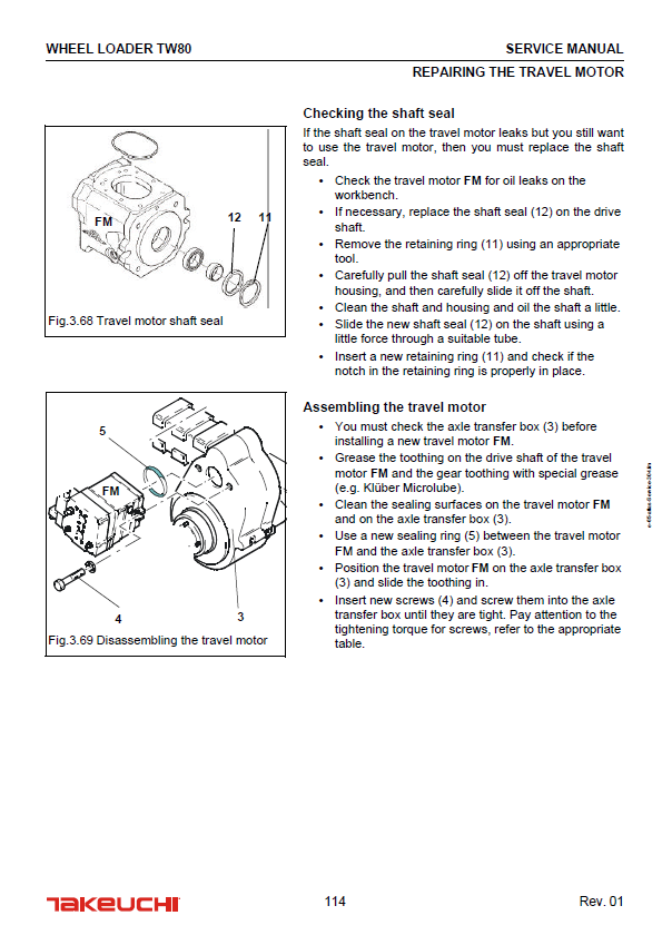 Takeuchi TW80 Wheel Loader Service Manual