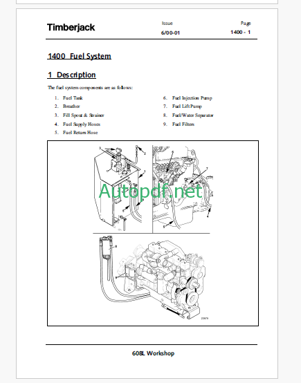 Timberjack 608L Feller Buncher Workshop Manual (SN 10BA1017 and UP)