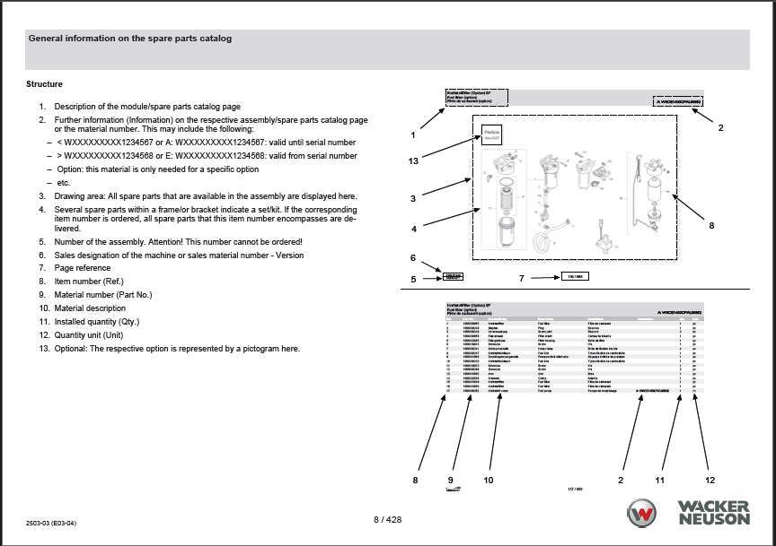 Wacker Neuson 2503-03 Tracked Excavator Parts Manual