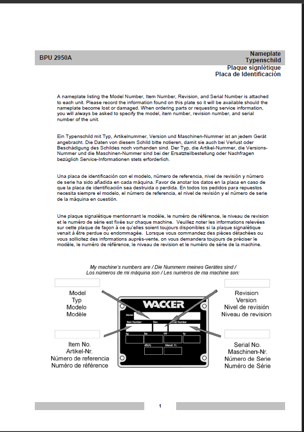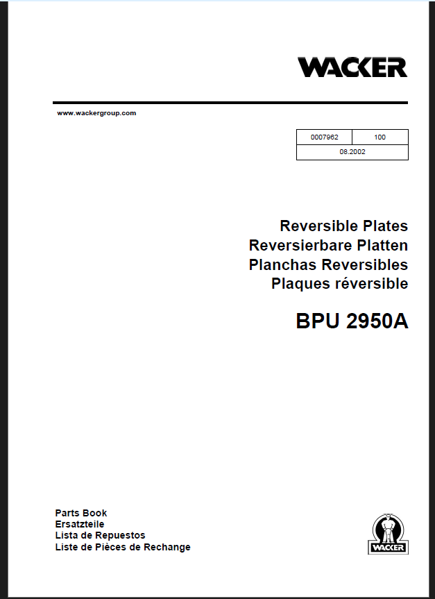 Wacker Neuson BPU 2950A Reversible Plates Parts Manual