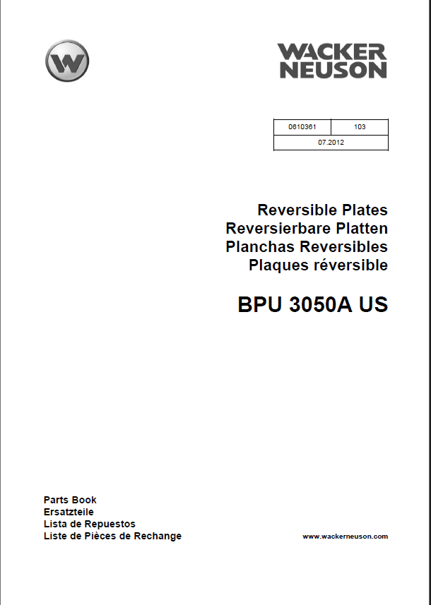 Wacker Neuson BPU 3050A US Reversible Plates Parts Manual