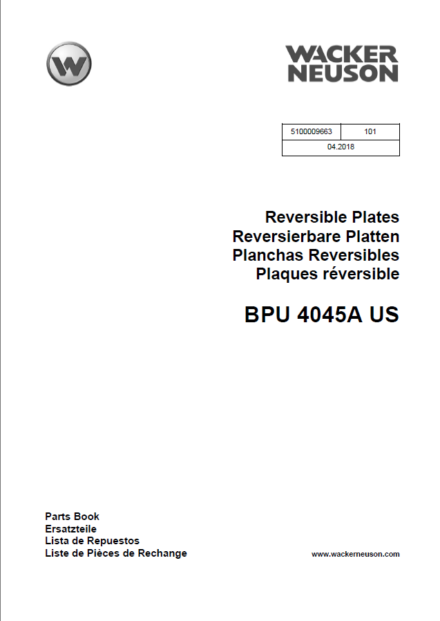 Wacker Neuson BPU 4045A US Reversible Plates Parts Manual