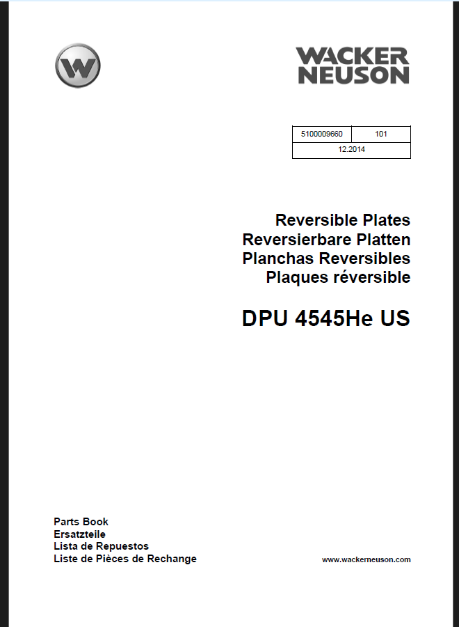 Wacker Neuson DPU 4545He US Reversible Plates Parts Manual