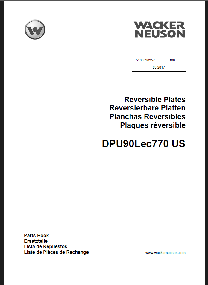 Wacker Neuson DPU90Lec770 US Reversible Plates Parts Manual