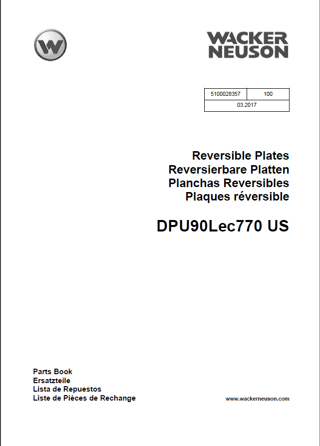Wacker Neuson DPU90Lem770 US Reversible Plates Parts Manual