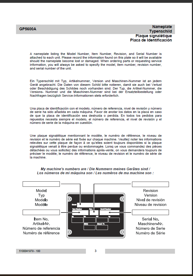Wacker Neuson GP5600A Portable Generators Parts Manual