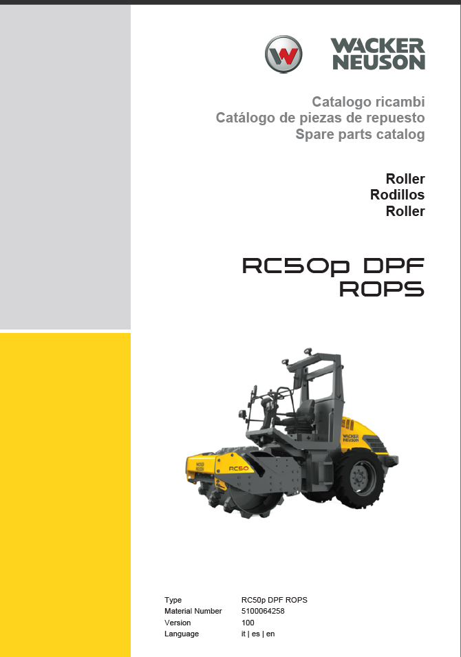 Wacker Neuson RC50p DPFR OPS Roller Parts Manual