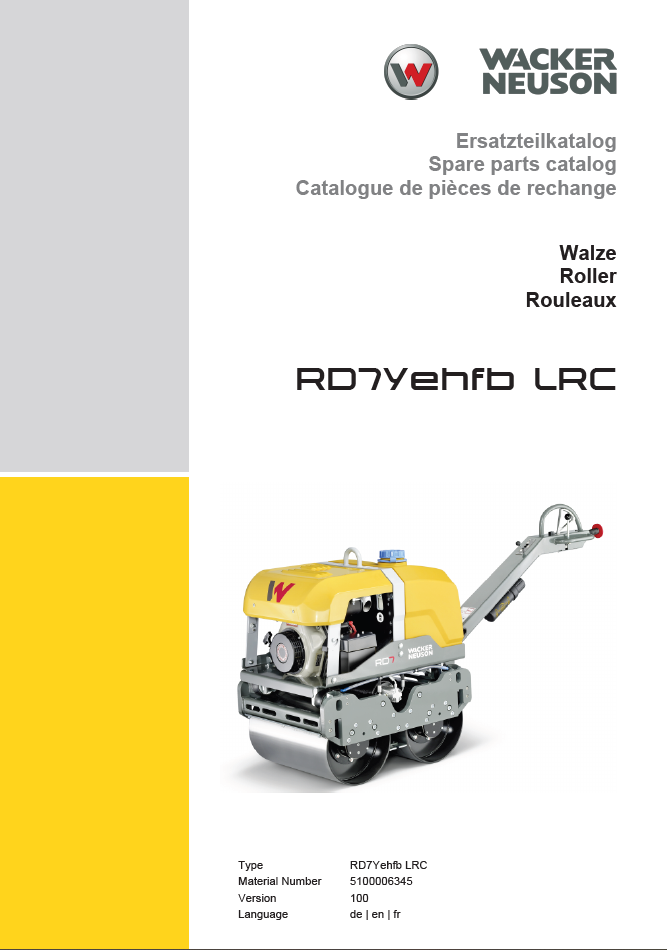 Wacker Neuson RD7Yehfb LRC Roller Parts Manual