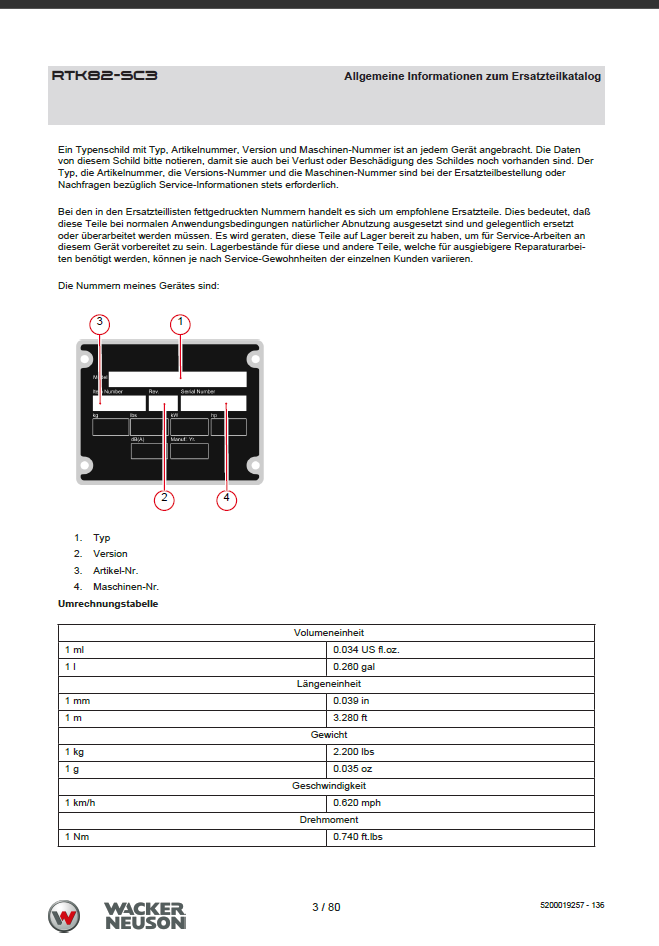 Wacker Neuson RTK82-SC3 Roller Parts Manual