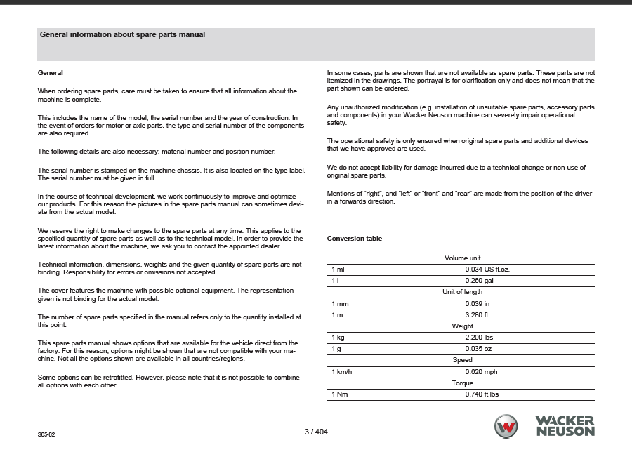 Wacker Neuson SW17 Skid Steer Loader Parts Manual