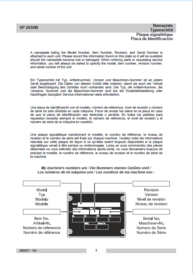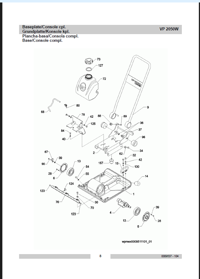 Wacker Neuson VP 2050W Single Direction Plates Parts Manual