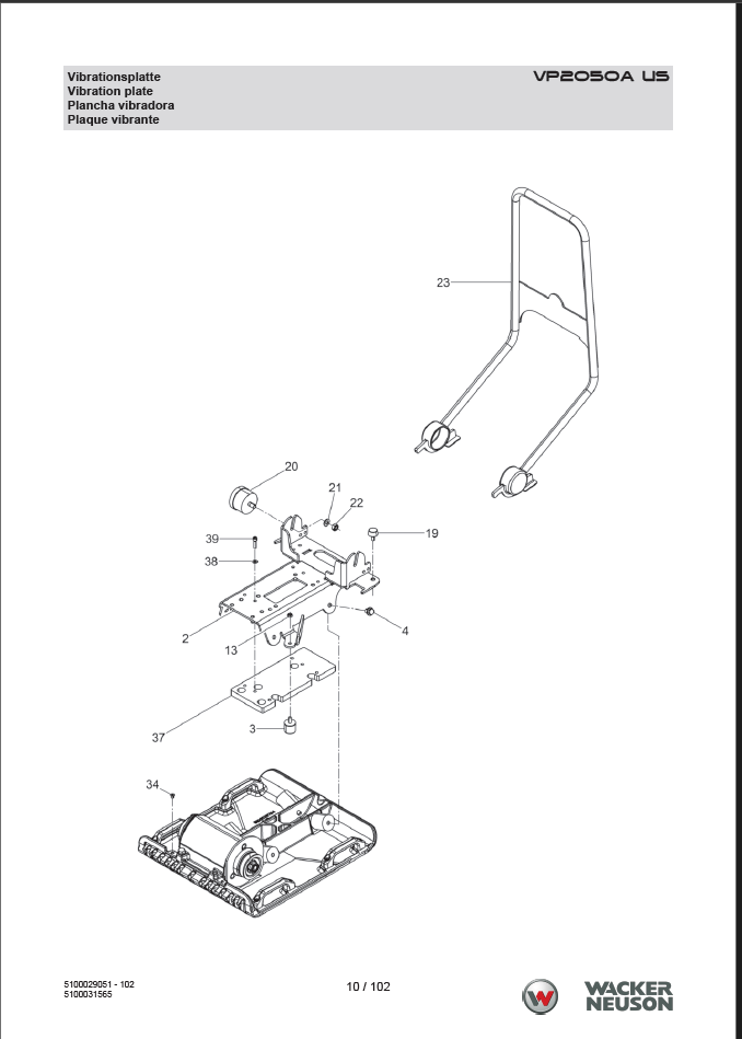 Wacker Neuson VP2050A US Vibratory Plate Parts Manual