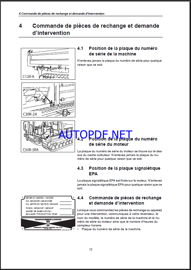 YANMAR C12R, C30R C50R MANUEL D’UTILISATION ET DE MAINTENANCE