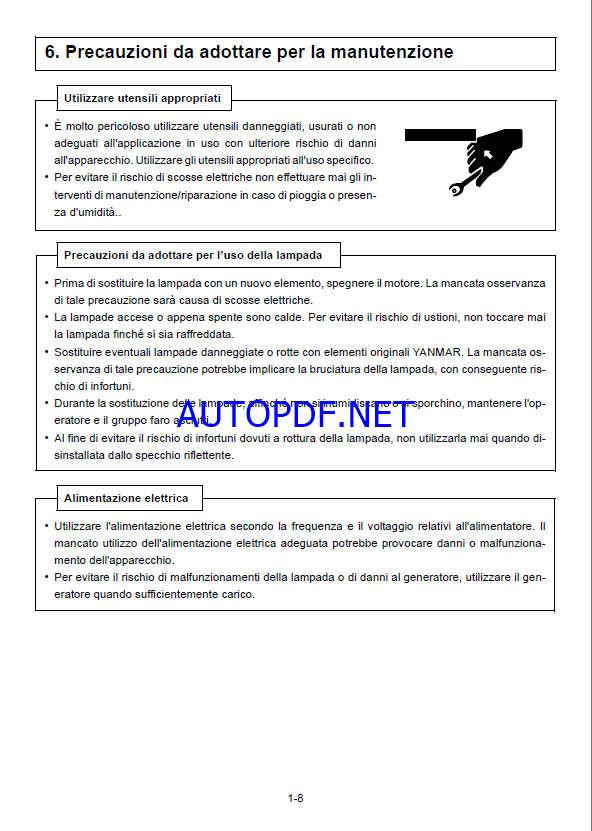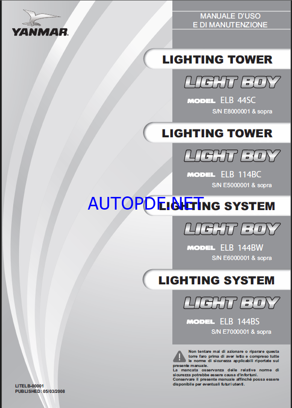 YANMAR ELB 114BC, ELB 144BW ELB 144BS, ELB 44SC MANUALE D’USO E DI MANUTENZIONE
