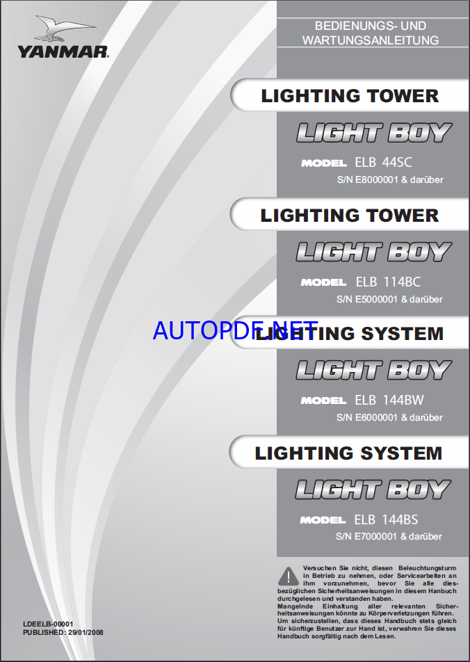 YANMAR ELB 44SC, ELB 114BC, ELB 144BW, ELB 144BS BEDIENUNGS- UND WARTUNGSANLEITUNG