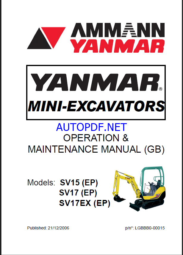 YANMAR SV15, SV17, SV17EX OPERATION & MAINTENANCE MANUAL